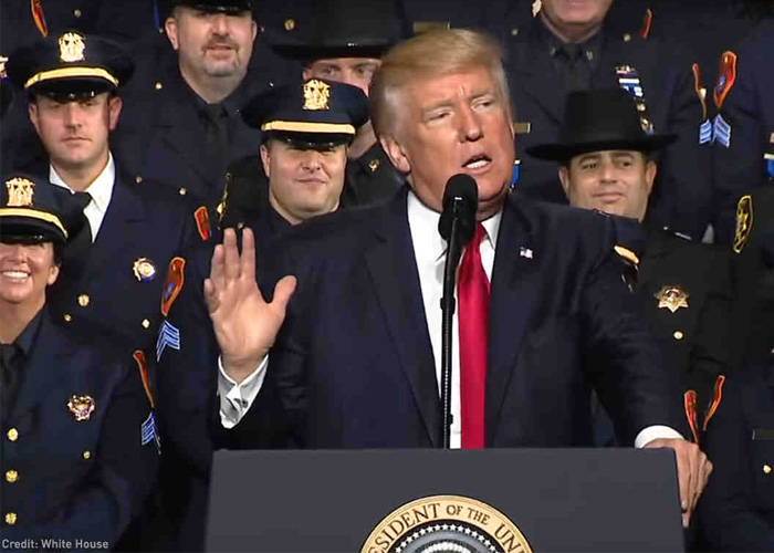 Tras haber rendido tributo a un grupo de oficiales de policía reconocidos por su valentía, indicó también que los congresistas demócratas no están asegurando los recursos necesarios para fortalecer las fuerzas del orden.