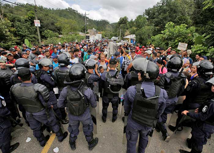 Estos son los obstáculos que ya empieza a enfrentar la caravana de migrantes que pretende atravesar Centroamérica con destino a Estados Unidos. @pedroultreras nos ofrece este reporte especial, mientras sigue la trayectoria del numeroso grupo de caminantes. pic.twitter.com/HqjXCZbN2G