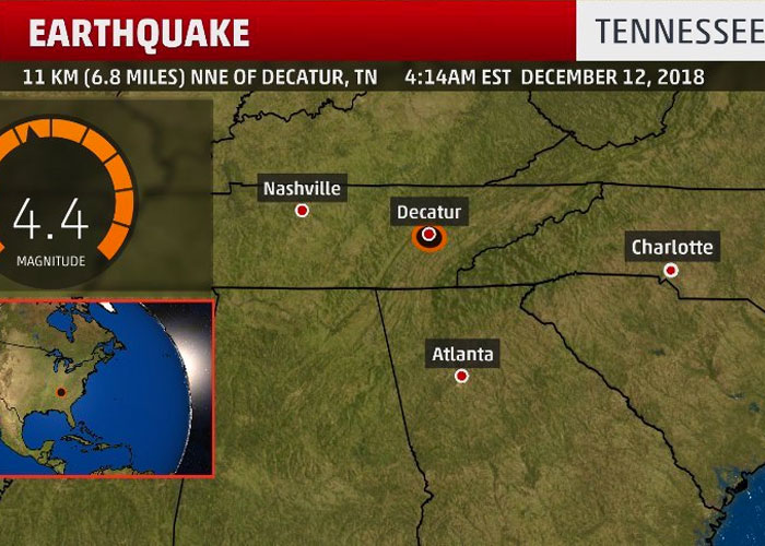 DECATUR, Tennessee, EE.UU. (AP) — Un sismo de magnitud 4,4 remeció el miércoles el este del estado de Tennessee y pudo sentirse en Atlanta, según reportó el Servicio Geológico de Estados Unidos.