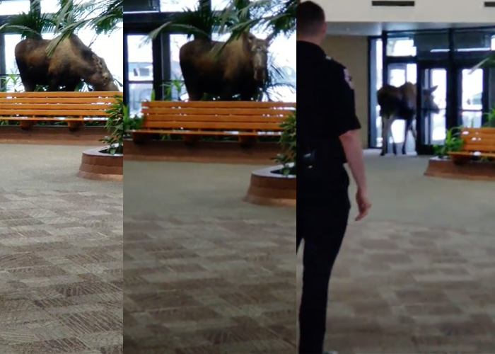 Hupton trabaja en el área de facturación de un consultorio de terapia física dentro de un edificio del Hospital Regional de Alaska en Anchorage. Cuando un paciente mencionó que el personal de seguridad monitoreaba un alce que había entrado al edificio, ella salió de inmediato y comenzó a grabarlo.