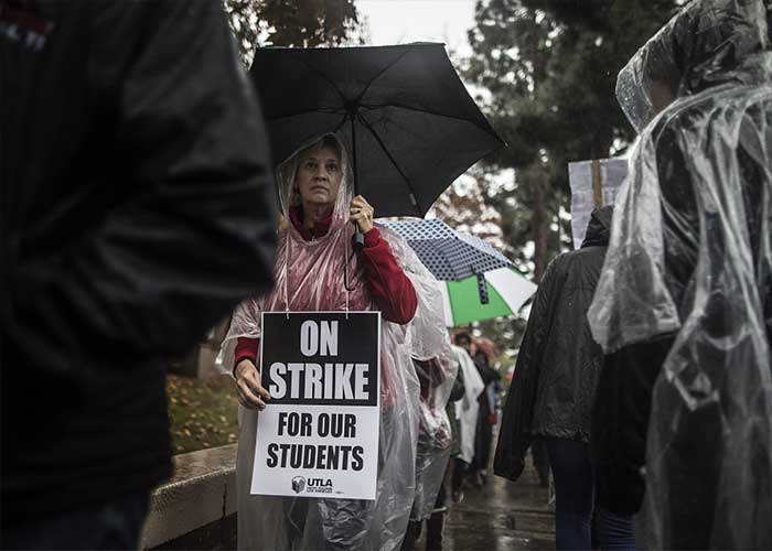 LOS ÁNGELES (AP) — Maestros se manifestaron el jueves bajo la lluvia afuera de las escuelas de Los Ángeles, en el cuarto día consecutivo de una huelga de docentes ante una nueva ronda de negociaciones que, según un líder sindical, probablemente va a demorar.