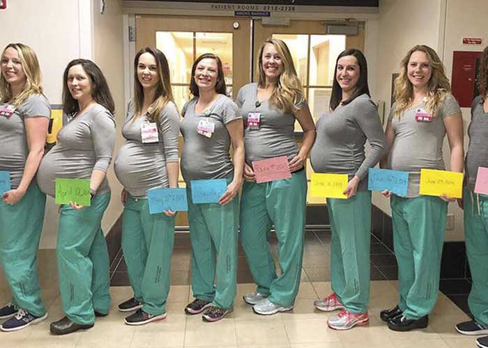 Nueve enfermeras que trabajan en la misma sala de partos de un hospital de Portland (Maine, EE.UU.) están actualmente embarazadas y esperan la llegada de sus bebés en los próximos meses.