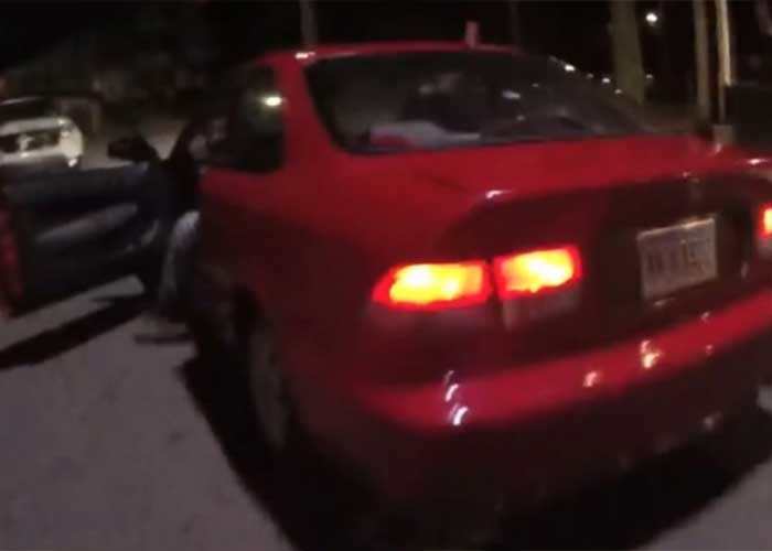 En el video de vigilancia de la zona, se puede ver al agente Eaton salir con velocidad de la camioneta de policía e inmediatamente correr, con la pistola apuntando al carro, rumbo a la pareja, mientras disparaba.
