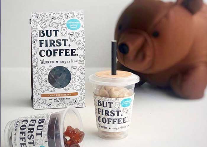 Estas gomitas en forma de ositos están siendo comercializadas en Estados Unidos por Sugarfina, en alianza con una cafetería de Los Ángeles. Los dulces fabricados con cafeína vienen en tres presentaciones; la clásica Cold Brew, la concentrada Bourbon Cold Brew y una con leche de almendras, la Iced Vainilla Latte. Todas sin una gota de alcohol.