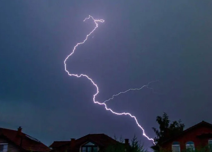 Una mujer decidió grabar con su teléfono celular, un potente y ensordecedor rayo que hizo impactó a pocos metros de su casa.