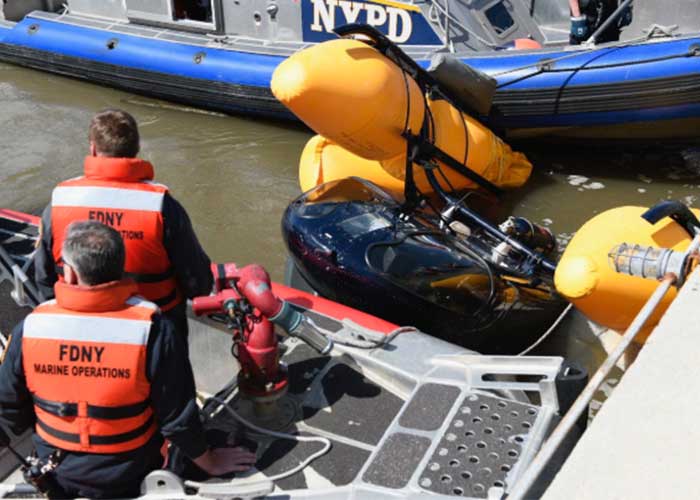 Poco después de las 2:30 p.m. hora local, las imágenes de las televisiones locales mostraban un helicóptero volteado en el río a escasos metros de un helipuerto situado en la orilla oeste de Manhattan, a la altura de la calle 30.