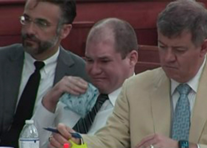 En uno de los momentos más emocionantes del juicio, cuando la fiscalía mostraba fotografías y videos de la familia de Jones, en algunos el padre sonríe, besa o abraza a sus niños, éste no pudo contenerse y se echó a llorar, dice AP.