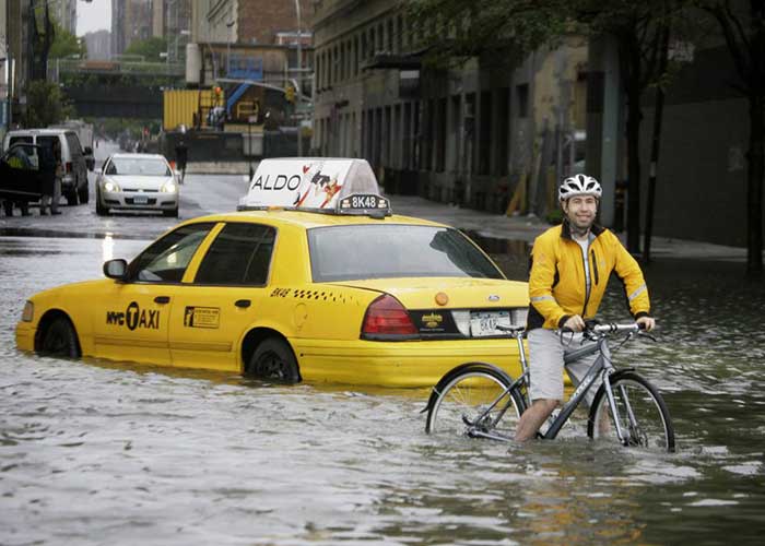 En uno de los videos se puede apreciar un coche que casi flota en el agua como si fuera un barco. En Brooklyn, en particular, la gente ha colocado barricadas de color naranja y blanco en ciertas calles para que el agua no se meta en los edificios.
