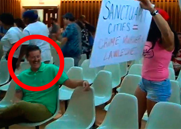PHOENIX — Alex Kack está desconcertado: se ha convertido en una celebridad en el internet cuando lo único que hizo fue reírse en una reunión del concejo municipal de Tucson, Arizona, en la que algunos asistentes sacan pancartas antiinmigrantes.