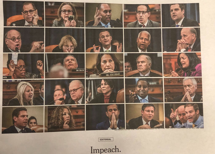 A preview of tomorrow's New York Times editorial page in print, calling on Congress to vote to impeach the president. Please read. https://t.co/MeRBrur1Ab https://t.co/V1QnMLJsLl pic.twitter.com/XNpHIXv2T6