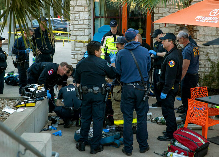 Daniels dijo que desconocía si las víctimas en Freebirds eran empleados. No se informó la identidad de los agredidos, pero los servicios de emergencia del condado de Austin-Travis indicaron que un hombre de aproximadamente 20 años fue declarado muerto en el sitio. El sargento de la policía señaló que se usó un cuchillo en el ataque, pero no especificó si era del propio restaurante.