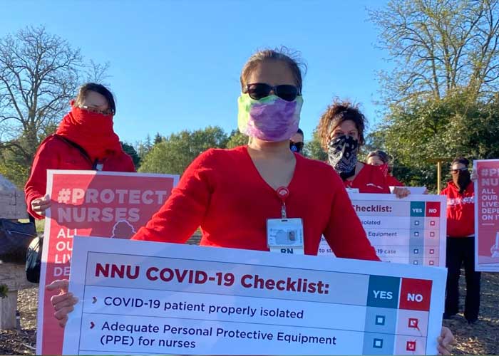 Mike Gulickm, un enfermero del centro médico Providence Saint John's en Santa Mónica, California, denunció que sus colegas y él temían atender a los enfermos sin poder colocarse una mascarilla N95, que solo es disponible para los médicos, pero la gerencia del hospital dijo que eran innecesarios y que no las distribuirían.