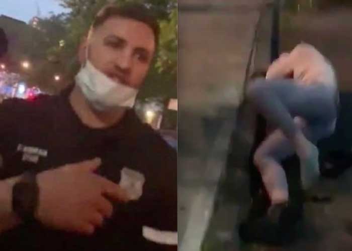 En el video que protagoniza, D'Andraia empuja a Dounya Zayer, de 20 años, hasta hacerla caer al suelo y le grita "puta" (bitch) después de que ella le pregunte por qué le ordena salir de la calle.