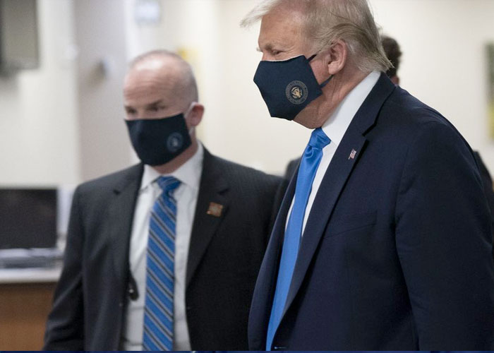Trump viajó en helicóptero al Centro Médico Militar Nacional Walter Reed en un suburbio de Washington para visitar a militares heridos y personal de salud que atiende a pacientes de COVID-19. A su salida a la Casa Blanca, el presidente dijo a los reporteros que “cuando uno se encuentra en un hospital, especialmente… creo que se espera que se use una mascarilla”.