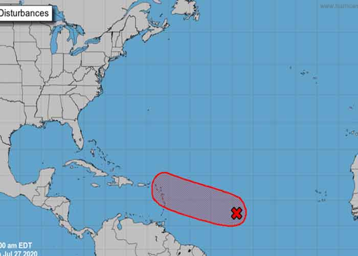Miami, 27 jul (EFE).- Los meteorólogos del Centro Nacional de Huracanes (NHC) de EE.UU. vigilan un sistema de baja presión situado a unas mil millas (1.600 kilómetros) al este de las islas de Barlovento, las más orientales de las Antillas Menores, con un 80 % de probabilidades de transformarse en la próxima tormenta tropical en 48 horas.
