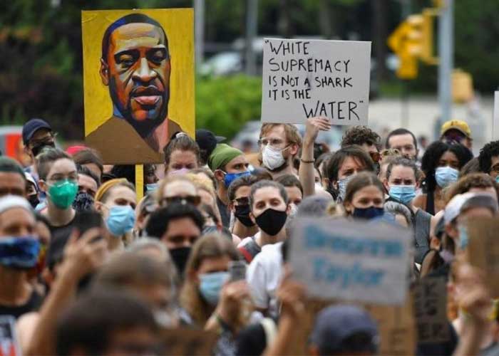 Como es habitual en estas protestas, los manifestantes entonaron los cánticos de "Las vidas negras importan" y "Desmantelen la Policía".