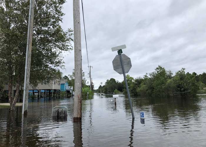 If you want to take a walk through neighborhoods off Hwy. 603 like Central Ave. you’ll need knee high rain boots because the Storm Surge is getting worse for this part of Bay St. Louis. No rain yet but the bay is still pushing all this water in-land cutting off over 100 homes. pic.twitter.com/2HjEYLM0Mz