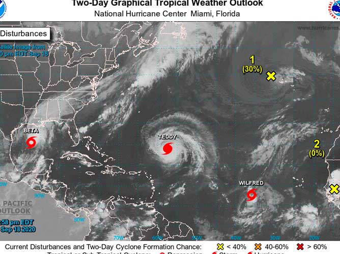 En la trayectoria pronosticada, Teddy se acercará a Bermudas tarde el domingo o temprano el lunes.
