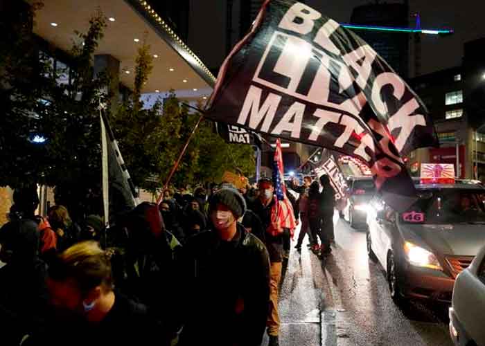 Manifestantes del movimiento Black Lives Matter tomaron las calles de Seattle en la noche electoral mientras aún continúa el recuento de votos.