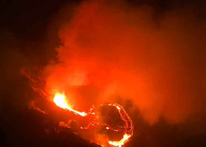 La erupción comenzó el domingo por la noche en el cráter de Halema’uma’u. El volcán se encuentra en el Parque Nacional Volcanes de Hawai.