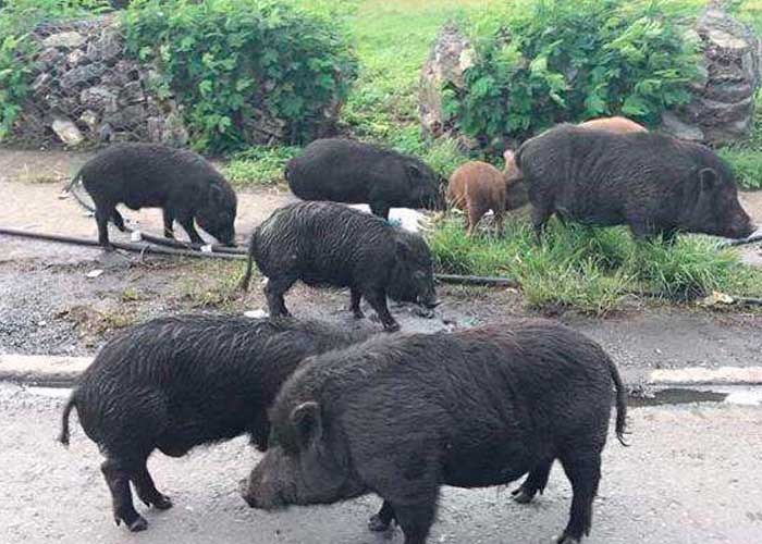 Los cerdos buscan comida en jardines y granjas, derribando botes de basura y dejando un rastro hediondo de orina y heces, con la escala ocasional para bañarse en baches llenos de agua de lluvia. Las antiguas mascotas o sus descendientes se reproducen a una tasa tal que la isla declaró el año pasado una emergencia de salud para que las autoridades federales pudiesen comenzar a erradicarlas.