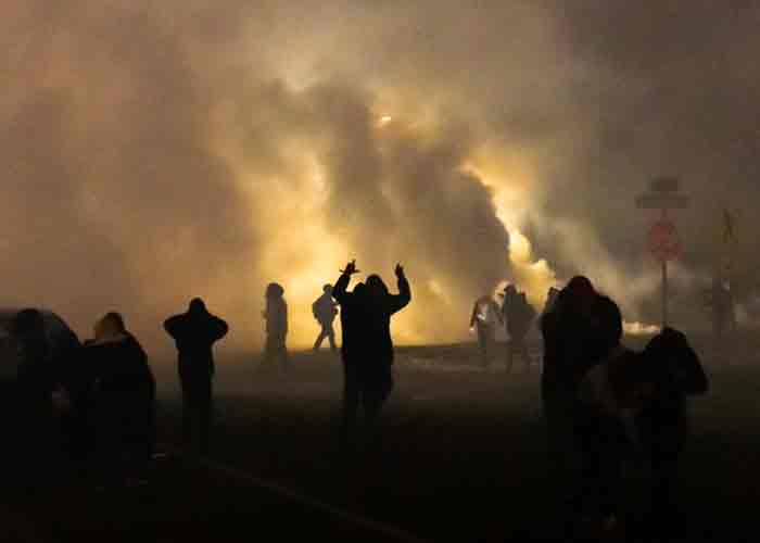 Fotos de la manifestación mostraban a hombres saltando sobre el parabrisas de una camioneta de policía. Según el diario Star Tribune, las fuerzas de seguridad dispararon municiones no letales para tratar de dispersar a los manifestantes.