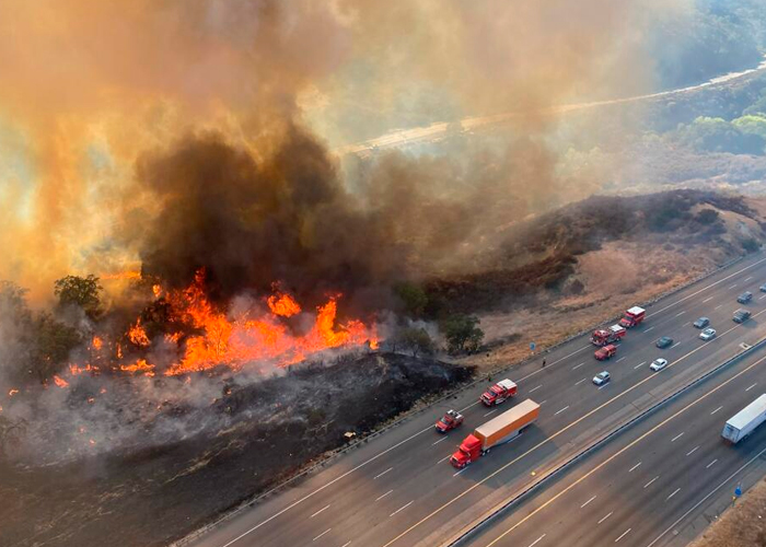 Como si fuera "película", Apocalíptico incendio en autopista de Los Ángeles