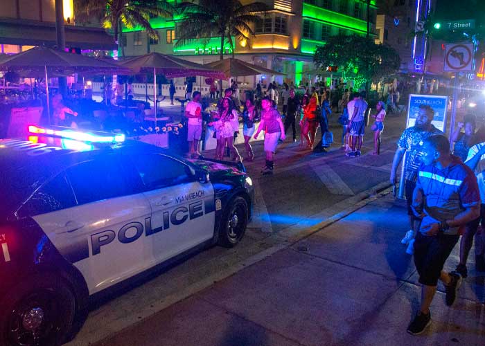 El ambiente de fiesta en la zona de South Beach; ya ha llevado a las autoridades a prohibir la venta de alcohol en centros nocturnos grandes después de las dos de la mañana. Hay policías en todas partes, incluso en torres móviles; desde donde los agentes tienen una vista panorámica de la zona. Este año se organizaron eventos de arte, música, yoga y torneos de voleibol para darle a la gente otras cosas que hacer, al menos durante el día.