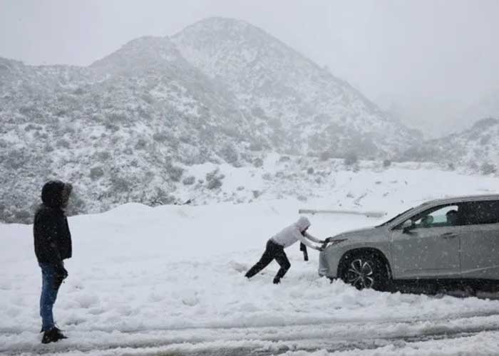 «Hay condiciones peligrosas y potencialmente fatales debido a la nieve en las carreteras de montañas, desiertos y colinas en el sur de California», dijo el Servicio Meteorológico Nacional (NWS, en inglés).