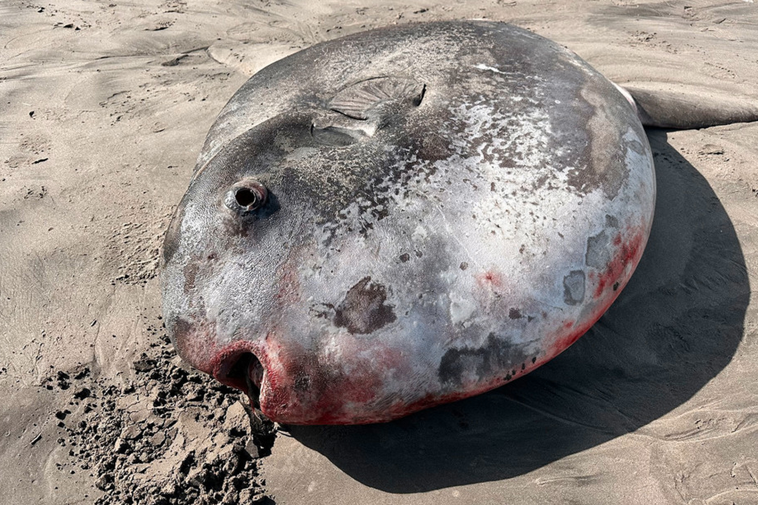 Un impresionante ejemplar de pez luna embaucador de 2,2 metros fue encontrado varado en la playa de Gearhart, Oregón, la semana pasada; según informó Fox News.