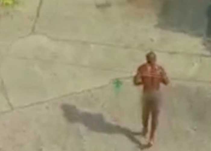 En un video quedó registrado el actuar del hombre que aparentemente en un grado de histeria salió corriendo de los arbustos, donde estaba recogiendo bayas y le dijo que le entregara su ropa, su billetera y su teléfono.