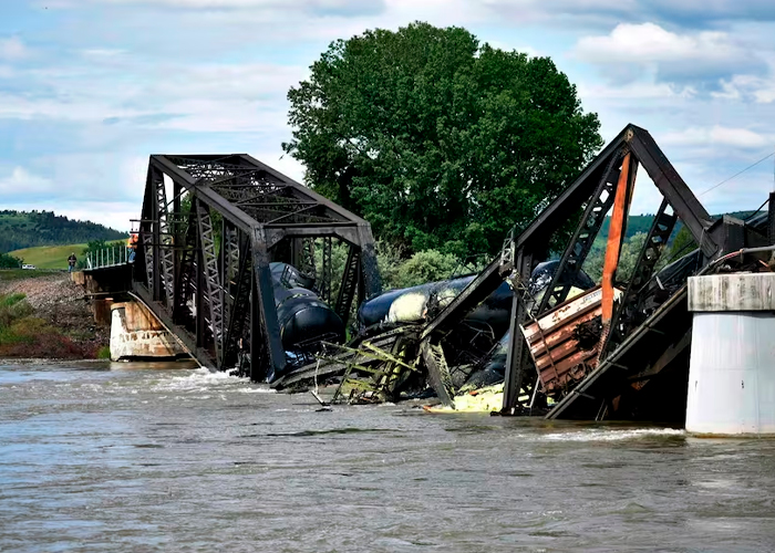 El pasado domingo, un puente ferroviario que conecta los estados estadounidenses de Dakota del Sur y Iowa sufrió un colapso parcial sobre el río Big Sioux a causa de las fuertes inundaciones que azotaron la región.