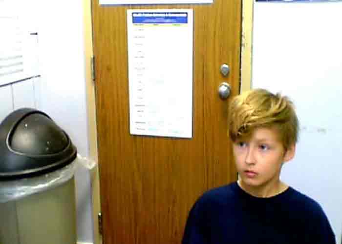 El canal WKMG difundió el vídeo de la audiencia en el que se ve al niño muy serio y callado mientras habla el juez.
