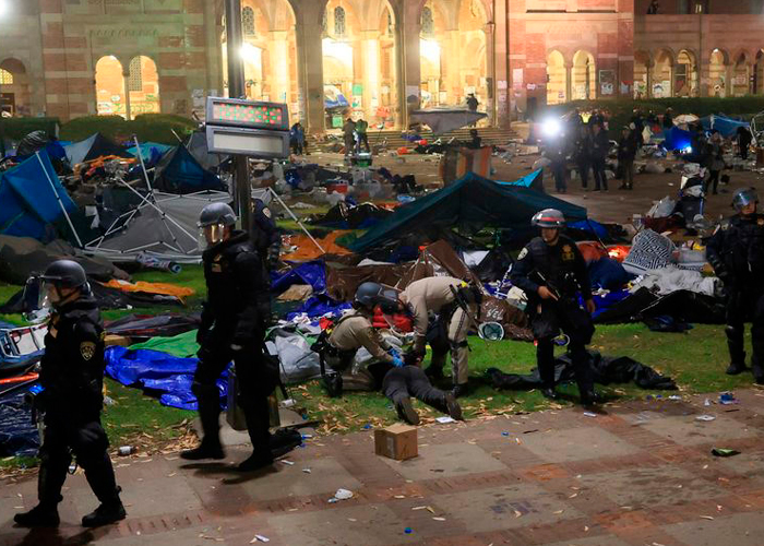 La Policía de Estados Unidos desalojó una sala de conferencias ocupada por manifestantes antisionistas en la Universidad de California, Irvine. Luego; hicieron lo mismo con un campamento estudiantil que llevaba más de dos semanas en pie.