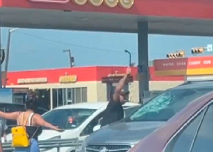 El incidente fue captado por un transeúnte y muestra al padre del menor golpear el parabrisas del carro con una barra de hierro en un estacionamiento.