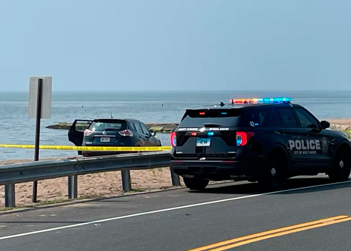 Según el Departamento de Policía local, los agentes respondieron a un llamado sobre una camioneta estacionada en la playa y escucharon gritos provenientes del agua.