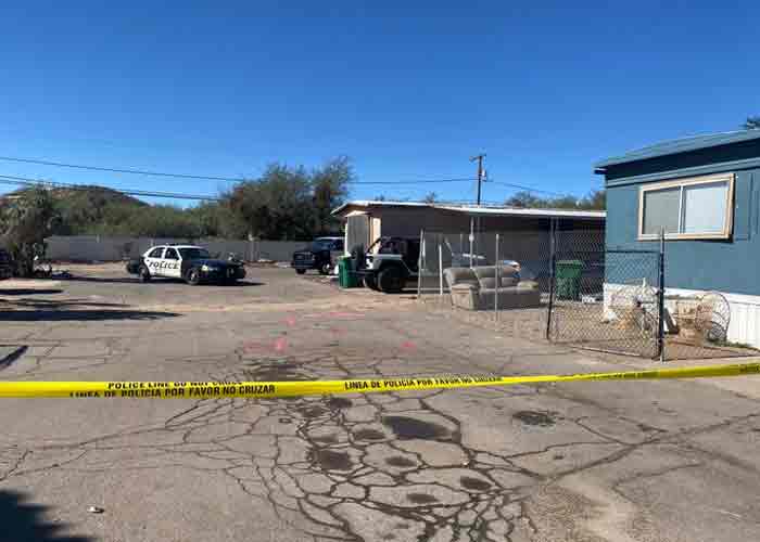 Las fuerzas del orden del estado investigan las causas del tiroteo haciendo una revisión exhaustiva en el parque de casas rodantes en Ajo Way, Tucson, para intentar juntar las evidencias necesarias.