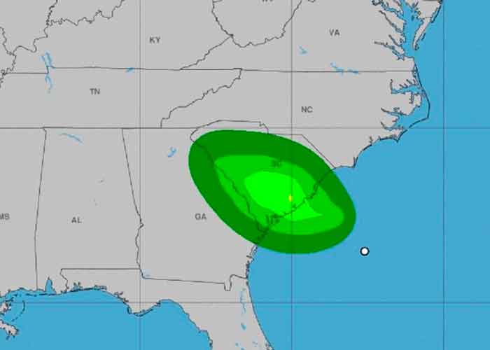 Según el patrón de trayectoria, el fenómeno meteorológico se moverá tierra adentro por el sur de Carolina del Sur y el este central de Georgia esta noche y temprana en la mañana del martes.