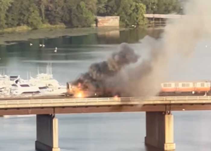 The MBTA says a person even jumped from the bridge into the water. They declined medical attention. pic.twitter.com/xTdSWFlP2L