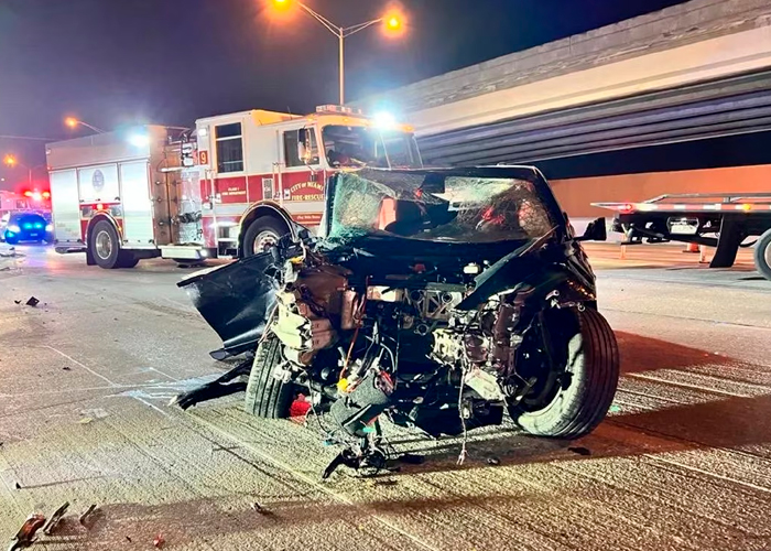 Según la Patrulla de Carreteras de Florida (FHP), un sedán Tesla negro perdió el control y chocó contra una barrera de hormigón mientras viajaba hacia el sur por la I-95, en el área de la calle 62 del noroeste.