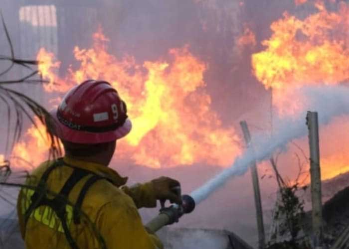 El video muestra como un equipo de bomberos está intentando sofocar las fuertes llamas.
