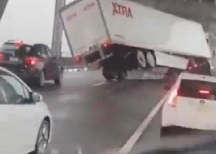 Los fuertes vientos del ciclón ‘Bomba’ del pasado domingo derribaron dos semirremolques en el puente de Richmond-San Rafael, causando al menos un herido y daños a otros vehículos.