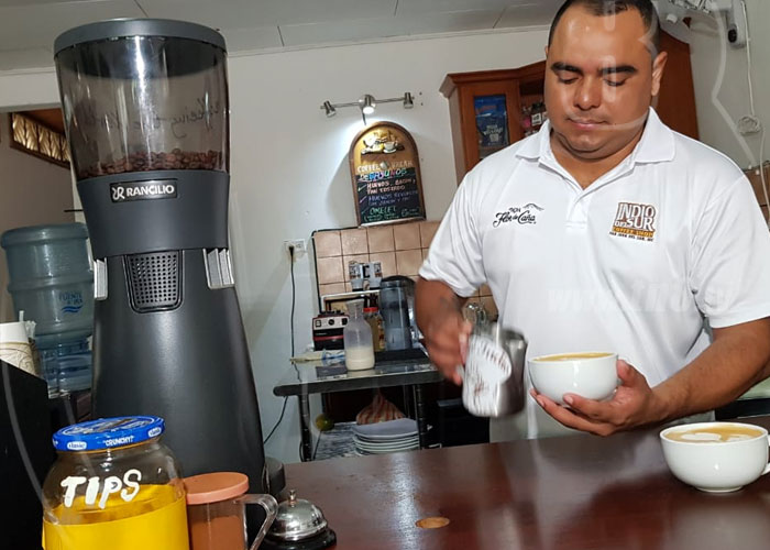 “Recuerdo que teníamos ocho tazas, sacábamos el café americano y el café con leche, después por parte del Instituto Nacional de Tecnología, INATEC, comenzamos a recibir cursos de barismo. Me gustó esa área, comencé entonces, venían los turistas, obtuve más conocimiento sobre lo que es un cappuccino y lo que es el arte latte, de qué se trata un coffee shop y sobre lo que se le debe de servir a la gente”, indicó César.