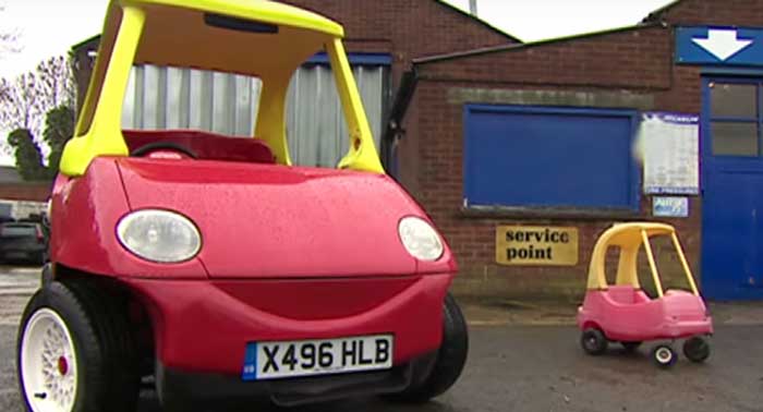 Pero eso puede cambiar ahora, pues uno de los juguetes más usados para niños, el carrito rojo con amarillo de Little Tikes (tal vez no lo tenían ustedes, pero algún primo o vecino sí) ahora tiene una versión para adultos desarrollado por John Bitmead para Attitude Autos.