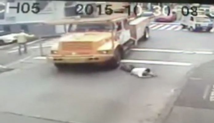 El hombre también resultó golpeado, pero quien se llevó la peor parte fue la pobre mujer, afortunadamente sobrevivió al brutal golpe del pesado vehículo.