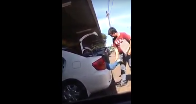 Las siguientes imágenes grabadas en un aparcamiento de Asunción, en Paraguay, han despertado la indignación de los internautas debido a que se observa a un hombre montando a un menor en el maletero del coche para luego cerrarlo e iniciar la marcha.