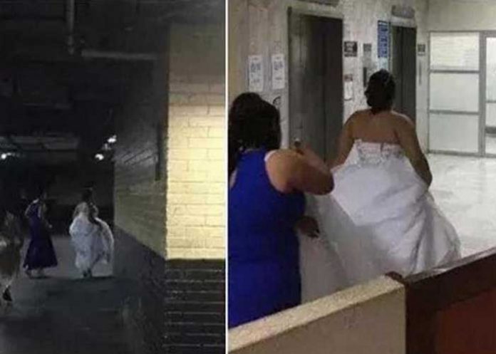 La novia salió de la iglesia con todo y vestido, maquillaje y tacones a buscar a su novio después de un tiempo de esperarlo, lo sorprendente es que la novia llegó hasta los estrados judiciales a buscar al joven porque fue arrestado por manejar un vehículo sin papeles. Todos los invitados estuvieron en el juicio y escucharon la sentencia, luego de esto la boda se realizó tal como se había planeado.