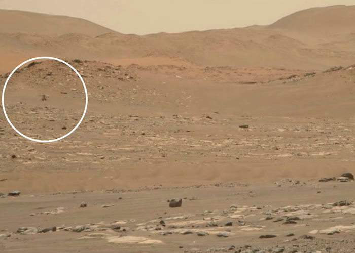 El helicóptero, cuyo peso es de tan solo 1,8 kilogramos, fue grabado por la Mastcam-Z de dos cámaras del explorador y se puede apreciar en dos videos. Uno destaca la mayoría del perfil de su vuelo, mientras que el otro proporciona un primer plano del despegue y el aterrizaje de helícoptero en Marte.