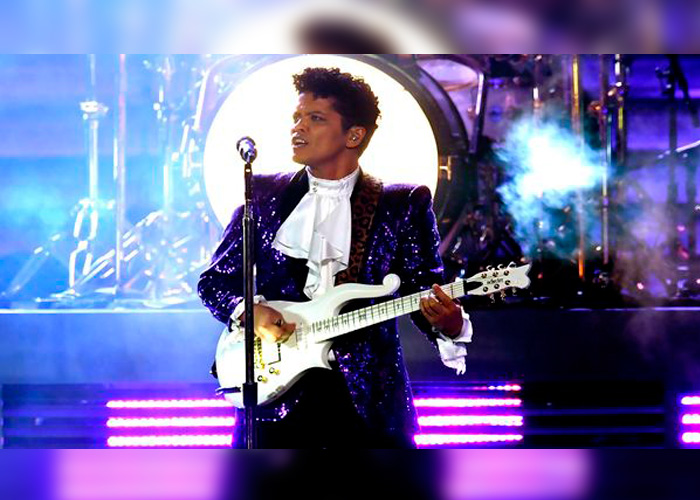 Vestido con un traje de color púrpura copiado el estilo de Prince, Mars interpretó la canción "Let's Go Crazy" en honor al cantante estadounidense.