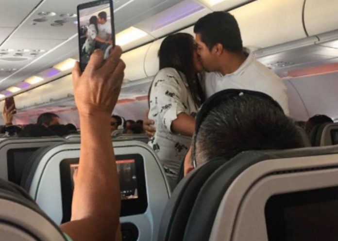 "La tripulación al completo fue increíblemente profesional, les agradezco por hacer que nuestro día fuera muy especial", dijo Horton según el canal de noticias, que publica un vídeo, tomado con la cámara de un teléfono, del momento en el que sorprendió a su novia Nicky.